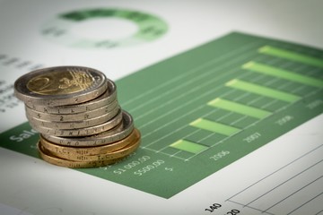 Euro Coins on Statistics - Close Up