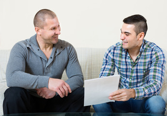 Friendly african american entrepreneur standing in meeting room near table with folder of documents, inviting to negotiations