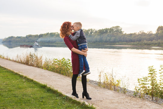 Loving mother and son embracing in cozy home interior