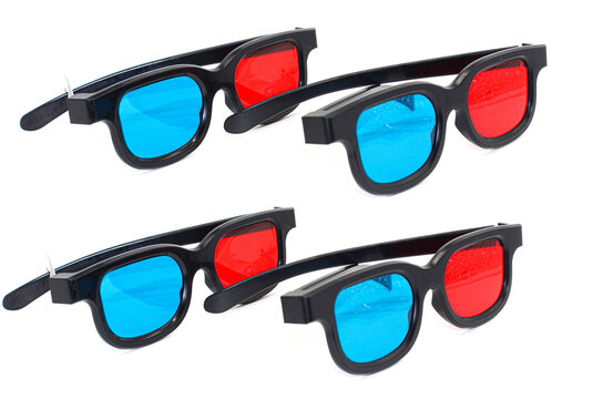 Retro 3d glasses from 80s in trendy neon light. Gradient pink-blue glow. Concept art. Pop culture 80s. Minimalism