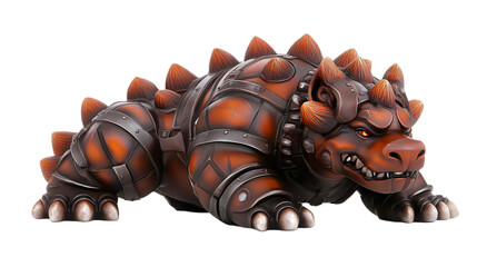 3D Rendered Illustration of Armored Dragon-Like Creature with Orange Spikes