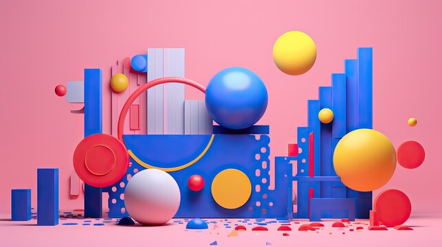 A vibrant array of objects burst against a vivid pink backdrop, evoking feelings of joy and inspiration, bold vibrant colors abstract 3d shapes background wallpaper