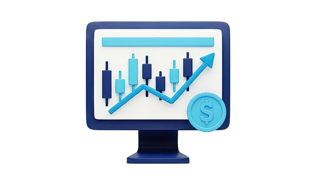 3D Monitor with Upward Trend Graph and Dollar Coin