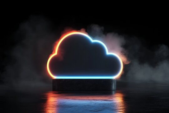 Futuristic cloud computing interface with neon glow