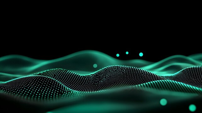 Lights and lines fill the dark space, creating a visual representation of binary code flowing through an abstract digital landscape. scene suggests motion and technology. 3d render