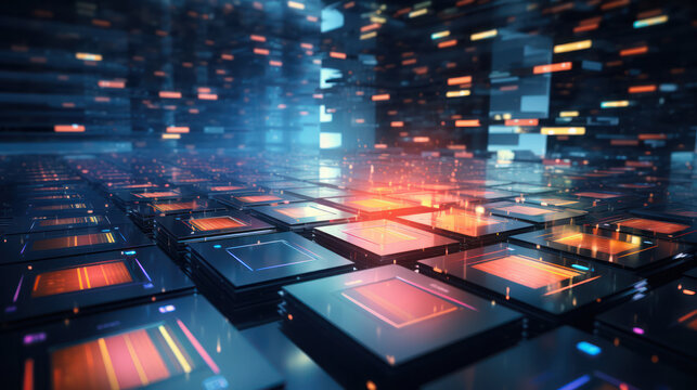 Futuristic 3d geometric pattern with neon lighting