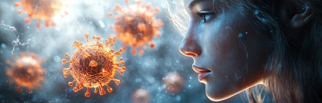 3d coronavirus cells surrounding human mannequin head