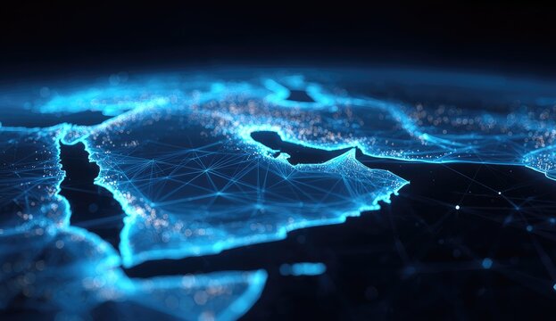 Abstract digital globe, glowing blue lines and points