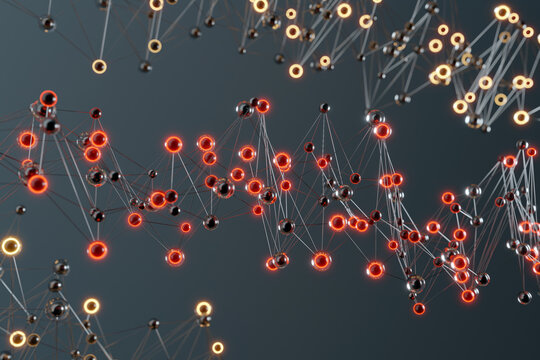 Futuristic 3d data visualization with glowing spheres on grid