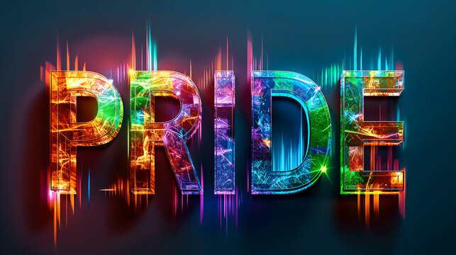 Diamond Crystal Glow Rainbow Pride Sign. Cyber 3D Text Effect, Holographic Neon. Equality, Diversity, Freedom, Fun. Electronic Dance Music, New Disco. Club Party, Event, Parade. Banner, Cover, Header