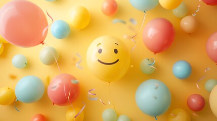 Glowing sun emoticon radiating energy over warm diagonal streaks vibrant abstract design