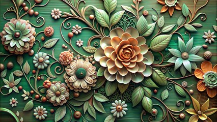 Decorative floral wall art, textured design, beige backdrop. Possible use home decor