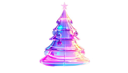 3d neon christmas tree with colorful decorations