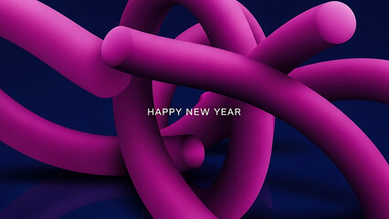 Pink abstract 3d tubes graphic with happy new year greeting text