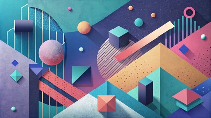 Colorful Abstract Art in Neo Memphis Style with Textured Background