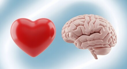 A human brain and a red heart on a blue gradient background