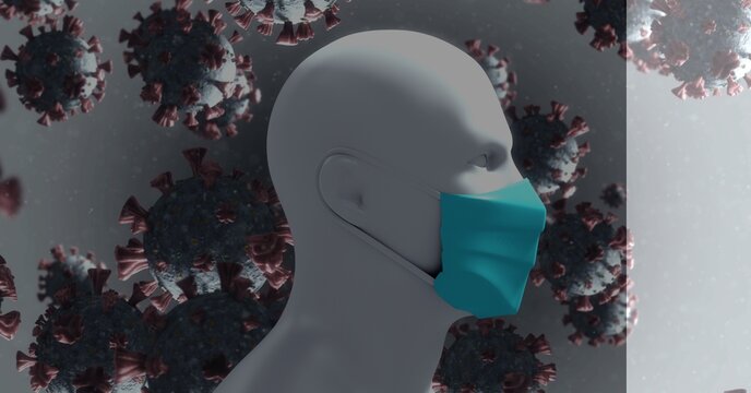 3d model with protective mask amid covid-19 virus particles conceptual art