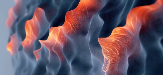 Futuristic digital 3d landscape with neon data visualization, seismograph 3d concept