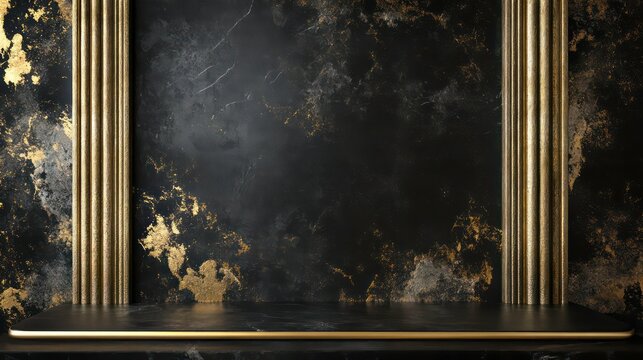 Dark marble pedestal display, luxury interior design, product showcase, digital rendering