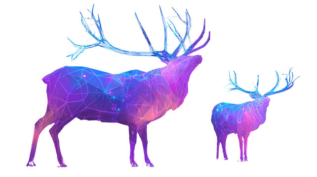 abstract neon polygonal deer with glowing antlers futuristic low poly wildlife art illustration isolated on white background