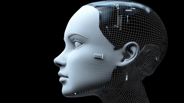 Intricate 3d head model with wires, fusion of technology and design