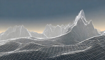 Retro Wireframe Landscape Creates a Futuristic Horizon with Glowing Grid