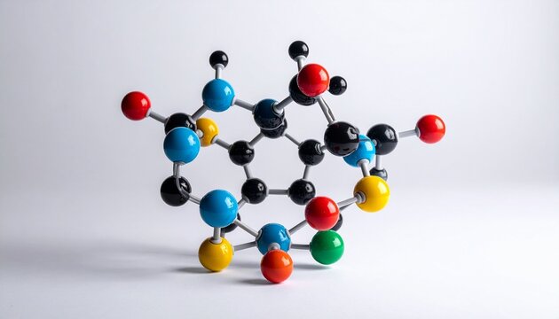 3D molecular model with colored atoms and bonds—evoking chemical structure, atomic interaction, and scientific clarity.