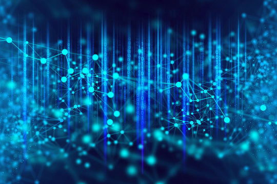 Network connection structure. Big data digital blue background. Science background with connected dots and lines. 3d rendering.