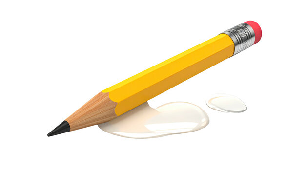 Yellow pencil resting atop a creamy, white, spilled liquid on black