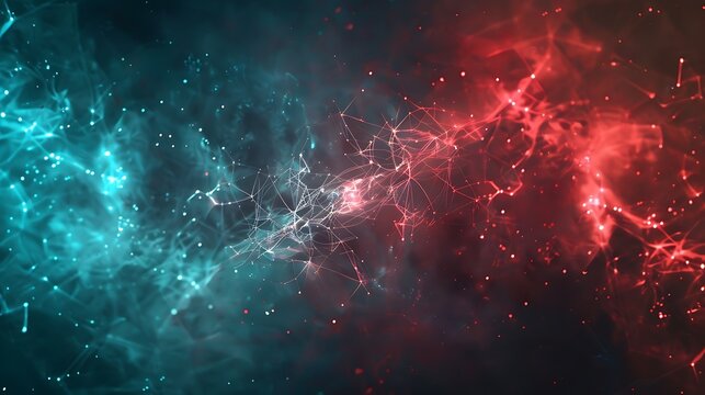A simple science template with a Plexus background in red and teal, sleek design and ultra HD quality