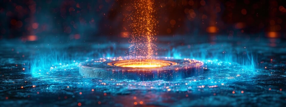 Futuristic glowing energy portals in dark abyss