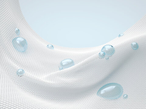 Cloth surface with water bubble, white fabric fiber, 3d rendering.