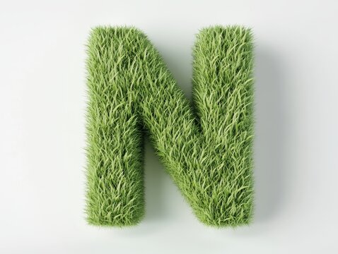 Grass font 3d rendering letter C isolated on a transparent or white background