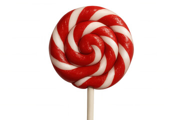 Vibrant red-white spiral lollipop spinning against transparent backdrop, representing classic sugary confectionery design