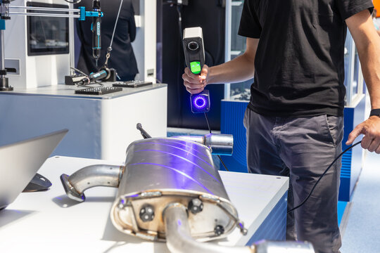 3D scanning of automotive exhaust part using handheld laser scanner in an industrial engineering environment