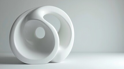 Minimalist white circle sculpture with white background display artistic studio 3d render soft lighting contemporary design concept
