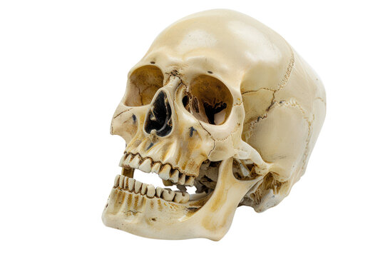 Detailed 3D model of the skull with visible teeth and jaw bones. Suitable for dental textbooks, anatomy and medical illustrations.