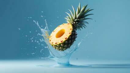Fresh lemon slices splashing in water