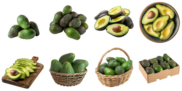 Avocado png isolated set in 3d transparent using for presentation.