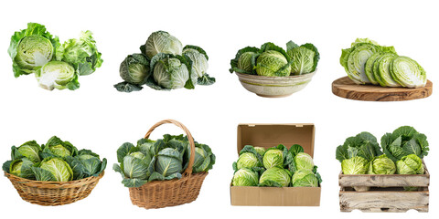 Cabbage png collection in 3d transparent for product presentation.