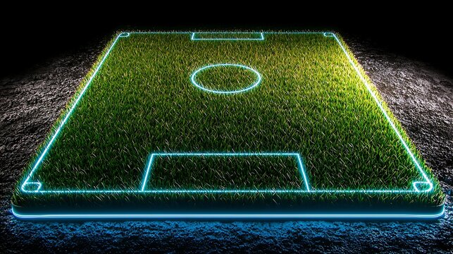 textured soccer game field with neon fog center, midfield, 3D Illustration