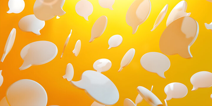 Businessman using digital speech bubbles talk icons. Minimal conversation or social media messages floating over user hand. 3D rendering