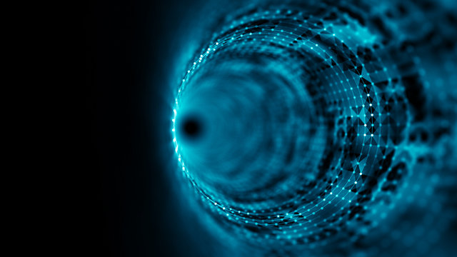 Futuristic data tunnel with digital nodes in cyberspace