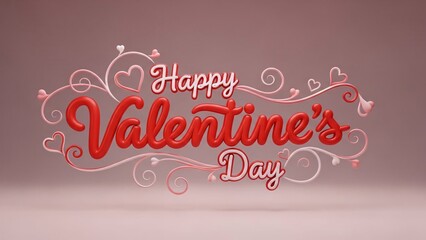 Creative 3d Happy Valentines Day typography with pink vine swirls and heart shapes