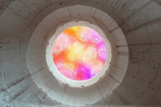 3D hand-crafted depiction of a round aperture featuring a glowing backdrop. Illustration created without AI.