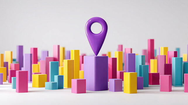 3D Model of Colorful Cubes and Map Marker