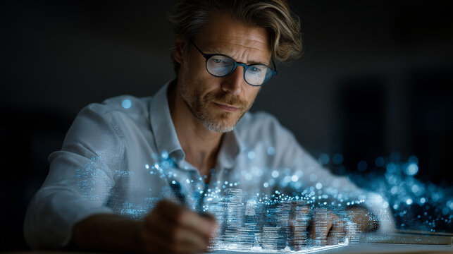 Office team using augmented reality hud with 3d human hologram for workplace collaboration
