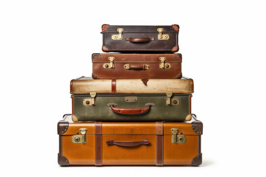 Vintage Luggage Stack Tags: Suitcase, Luggaging, Retro, Leather,