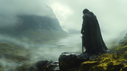 A Chinese swordsman of the 3rd century BC, dressed in silk armor and armed with a broad sword, is seen standing near the Great Wall