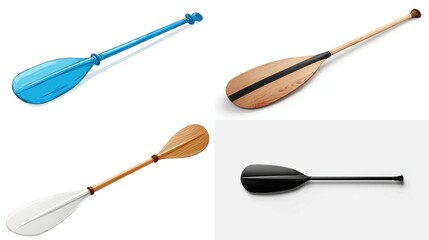 Four paddles blue plastic, black, light wood, and striped